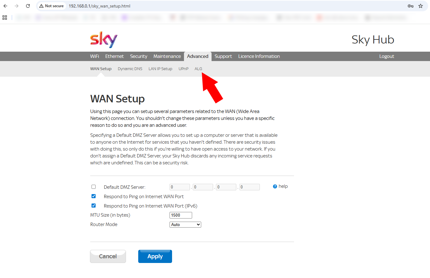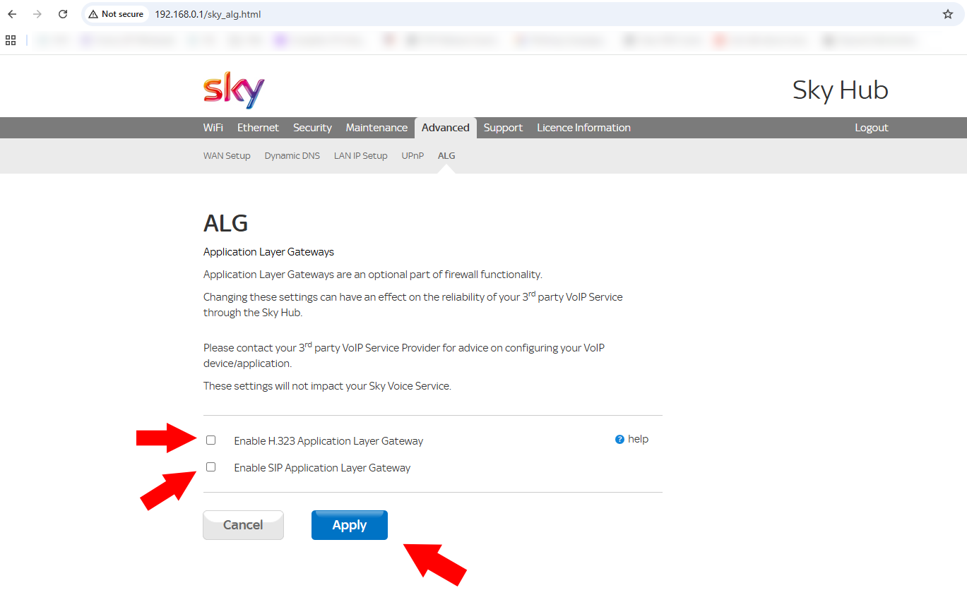 Step-by-step instructions of how to disable SIP ALG on a Sky Hub